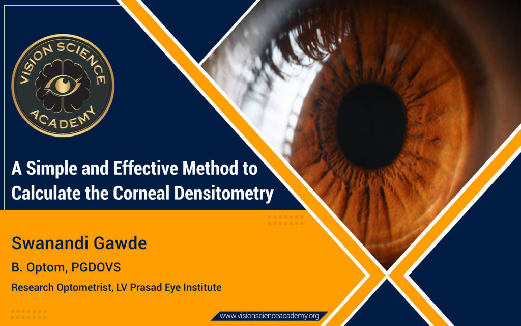 The typical procedure used for measuring corneal densitometry- Corneal topography measured with the rotating scheimpflug principle camera (Pentacam HR, Oculus GmbH, Wetzlar, Germany). It has added standard software for corneal densitometry analysis. Hence, it gives zonal densitometry for 4 annular concentric zones 0.0 to 2.0mm, 2.0 to 6.0mm, 6.0 to 10.0mm, and 10.0 to 12.0mm. In addition, it analyzes the densitometry with the stromal depth of cornea in 3 different layers- anterior stromal layer (120 µm), posterior stromal layer (60 µm), and the middle stromal layer between the anterior and posterior zone. (2) The corneal densitometry technique helps manage the corneal disease.
