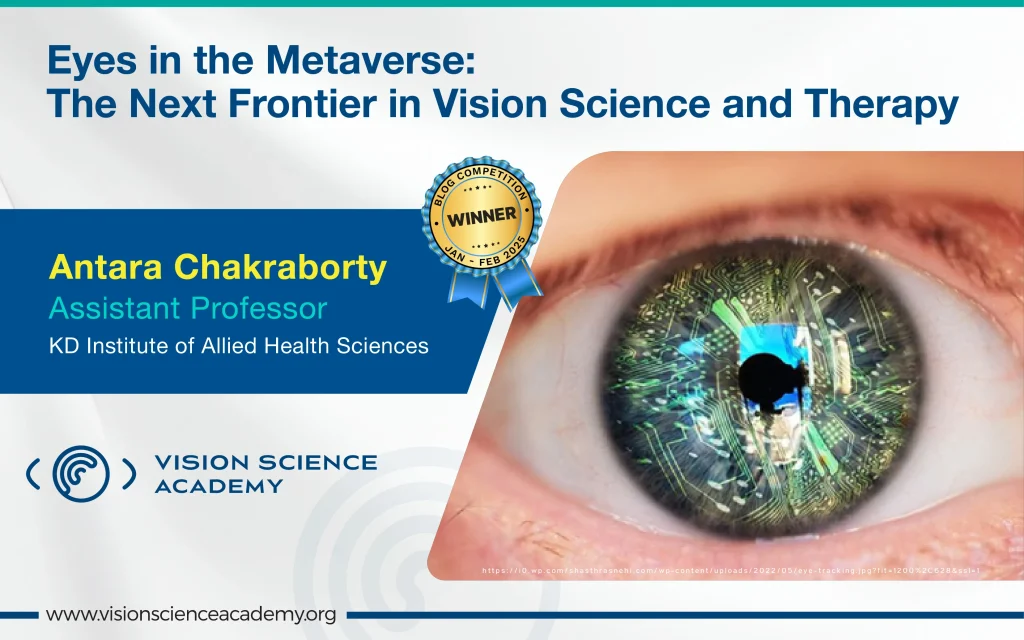 The metaverse uses immersive VR and AR environments to facilitate gaming, education, socialisation, and healthcare. However, these technologies pose visual health issues. Prolonged VR use can cause digital eye strain, migraines, blurred vision, and binocular vision issues such as convergence insufficiency. Prolonged screen exposure, lower blinking rates, and accommodation-vergence conflict—a mismatch between where the eyes concentrate and where they converge while using VR devices—are among the underlying reasons. (1,4)