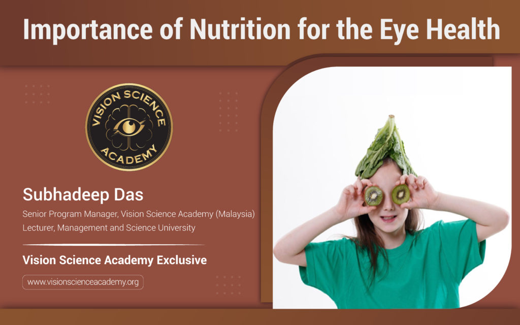 The eyes provide one of the most important senses, sight. For healthy functioning eyes, proper nutrition must be taken. It supports the eye function and aids in protecting the eye from harmful ultraviolet (UV) radiation. Healthy nutrients can also go in the long run, i.e., reducing the risk of vision loss due to aging. (1) According to the National Institute of Health, 94% of Americans have good vision, and the rest are visually impaired, i.e., near-sighted. (2) A study by Thevi et. al. concluded cataracts and retinal diseases are more common than other eye diseases. (3)