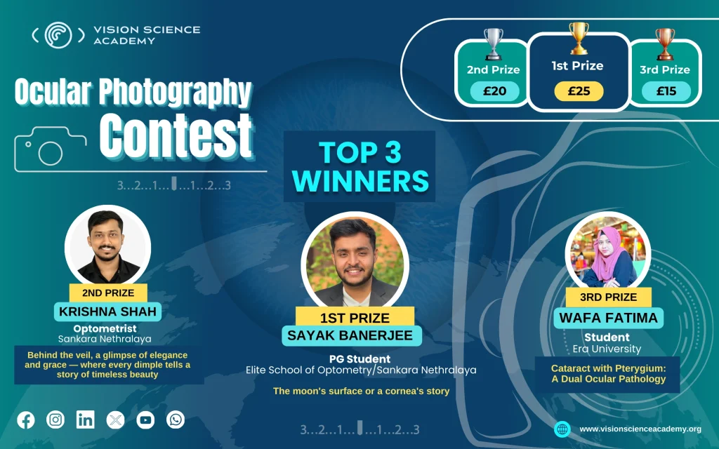Vision Science Academy extends its heartfelt congratulations to the winners and appreciates all participants for their outstanding submissions. Your dedication to ocular photography and vision sciences is truly commendable.