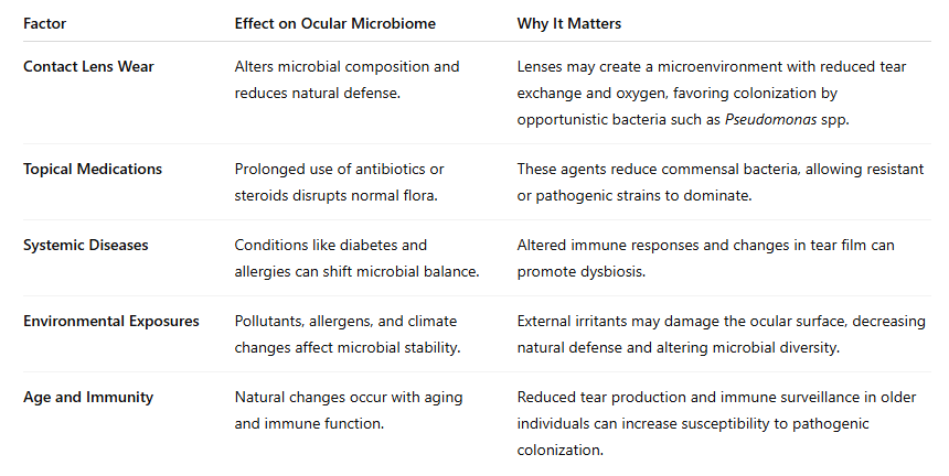 • Contact Lens Wear Complications: Dysbiosis increases chances of infection. (2)