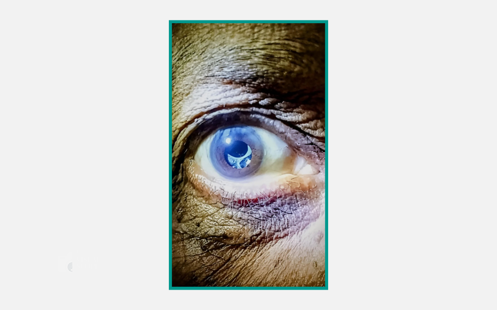 The image is depicting an eye with post-cataract opacification. A 70-years old female presented with gradual decrease of vision in the right eye with cloudy spots in vision. Unaided Visual Acuity was noted to be 6/60 with pinhole improvement up to 6/36. There was a positive history of cataract surgery done 3 years back. Upon diagnosis patient was advised for posterior capsulotomy.