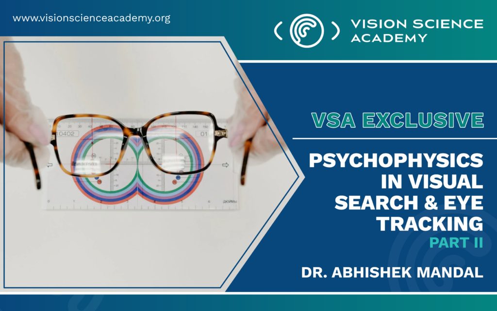 As elaborated in the first half of this article, the applicability of psychophysics principles in vision sciences is multifaceted. In addition to visual acuity and visual field testing, visual search tasks are often utilised in the psychophysical experimentation to evaluate the ability to distinguish between objects of varying colours, sizes, shapes, and orientations. Visual search refers to the ability to scan a visual scene to isolate a target object placed within a cohort of distractor stimuli. By monitoring brain activity in real time, application of psychophysical principles allows to effectively elaborate the neural networks which control the visual search mechanisms (Verghese, 2001).