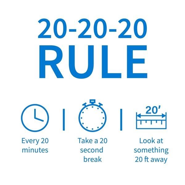 1. The 20-20-20 Rule: Every 20 minutes, look at an object 20 feet away for 20 seconds