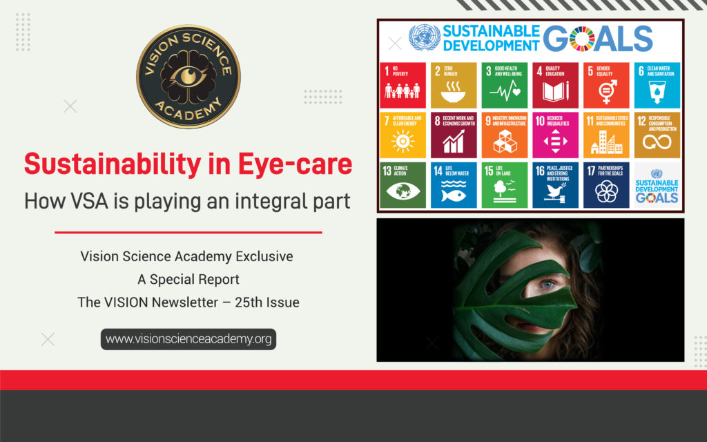 Good eye health can improve the progress of most SDGs and vice versa. Eye health depends on eye care services that include all kinds of remediations that enhance eye health, circumscribing the spectrum of promotion, prevention, treatment, and rehabilitation. There is a two-way association between eye health and the SDGs. This article is centralised on the SDGs most considerable for eye health, the impact of improved eye health on SDGs progress, and the role of the Vision Science Academy (VSA) in eye care and sustainability.
