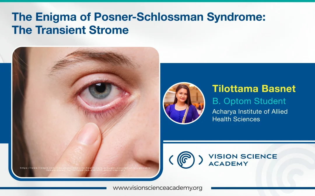 Posner-Schlossman Syndrome (PSS), also referred to as glaucomatocyclitic crisis, is a rare ocular disorder marked by abrupt, unilateral, repeated episodes of rise in Intraocular Pressure (IOP) and mild anterior chamber inflammation. (1) Adults between the ages of 20 to 50 years old are usually affected by PSS. (2) The pathophysiology is still unknown, although several theories have been proposed, ranging from autoimmune to infectious. (3)