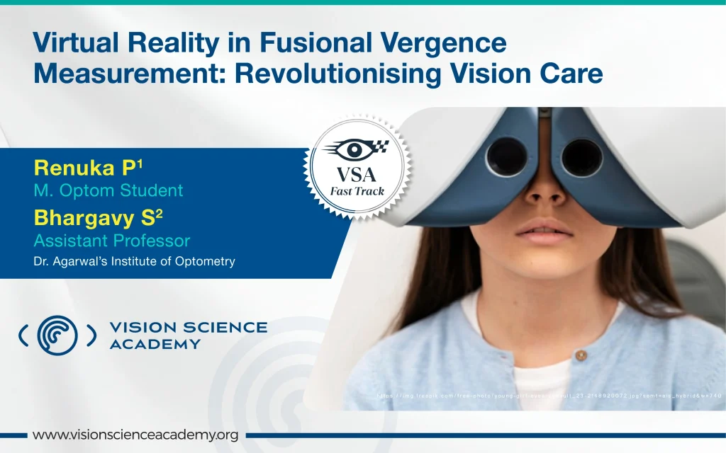 Virtual reality (VR) is increasingly recognised as a transformative tool in healthcare, especially in vision care. It offers innovative ways to diagnose and treat binocular vision disorders. A key advancement is in fusional vergence measurement, crucial for understanding how the eyes maintain single, clear vision at various distances. Conditions such as convergence insufficiency and amblyopia depend on accurate assessment and training of vergence, and VR enables more precise and effective intervention. (1)