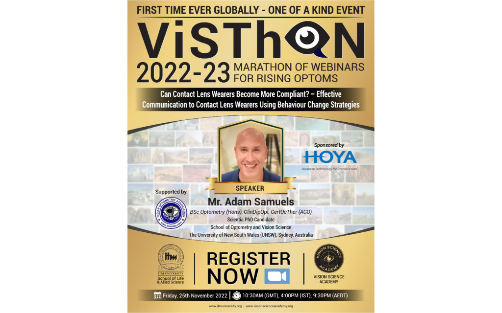 In this webinar, Mr. Adam Samuels will discuss poor contact lens compliance can be linked to risk factors for keratitis and vision loss. During this presentation, he will summarise research on some of the most prevalent contact lens risk behaviours. Finally, he will discuss behaviour change techniques directly to contact lens compliance advice so that webinar participants receive clinical pearls for practice.