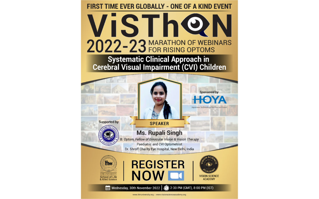 In this webinar, Ms. Rupali Singh will discuss Cerebral Visual Impairment (CVI), its causes, and the examination of patients with CVI. This talk will also present some tips and tricks to handle these special patients.