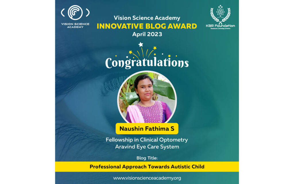 Congratulations to Naushin Fathima S, Fellowship in Clinical Optometry, Aravind Eye Care System for being selected as the recipient of KBR Foundation Monthly Innovative Blog Award for the month of April 2023.
